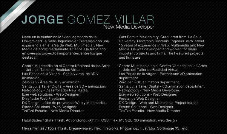 Participación / Role: Líder de proyecto, Diseño de interfaz de navegación, Animación y Programación, Flash y Sitio Web /